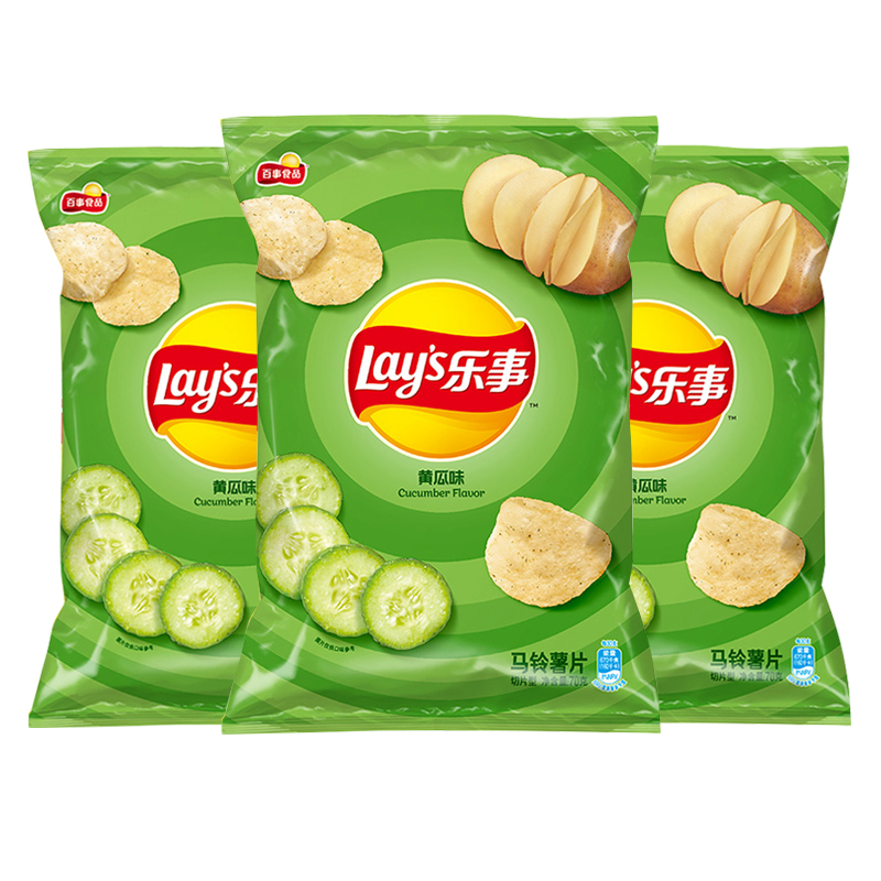Fun potato chips Cucumber Taste Fries 70g * 3 Packs Zero Food Big Gift Bag Real Crispy Fries Office Zero Mouth Web Red