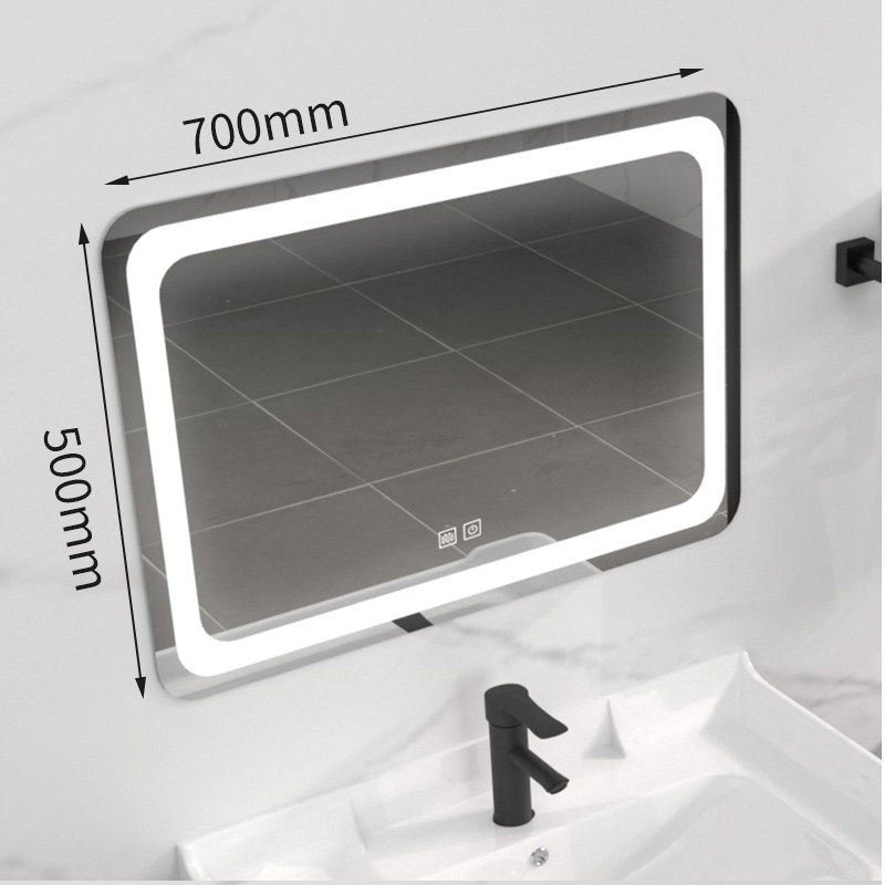 Makeup Room Bath Cabinet Smart Mirror Round Cosmetic Mirror Square Makeup Mirror Hanging Wall Type Fog-Proof Band Light Smart Mirror