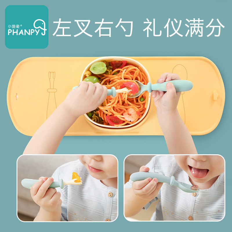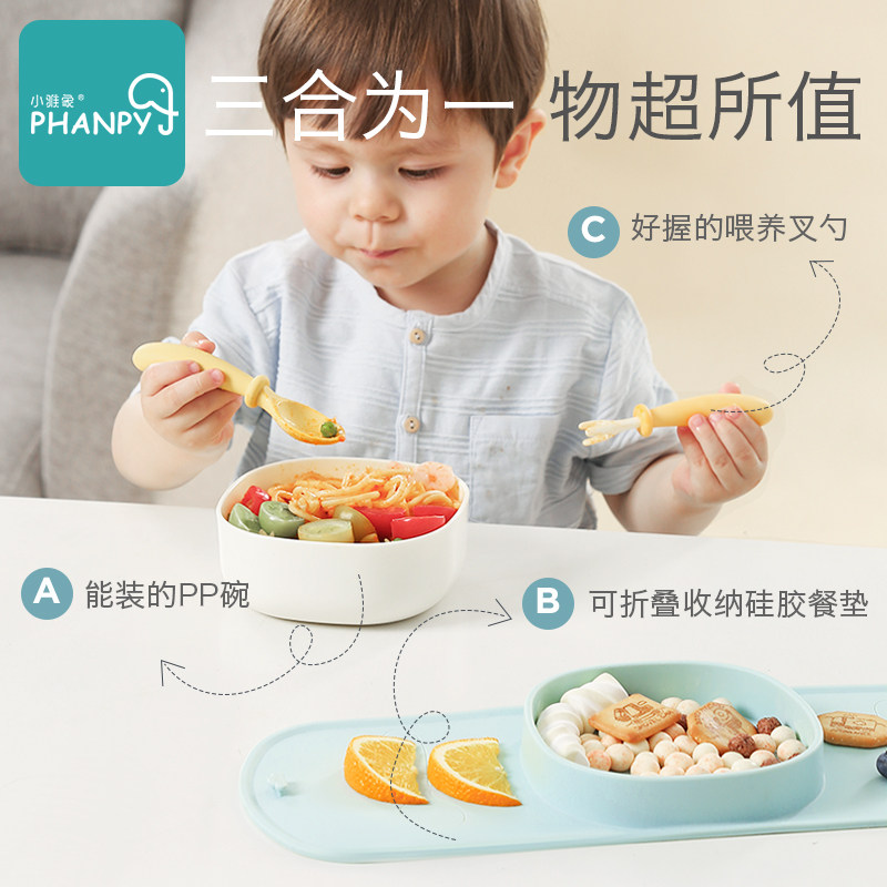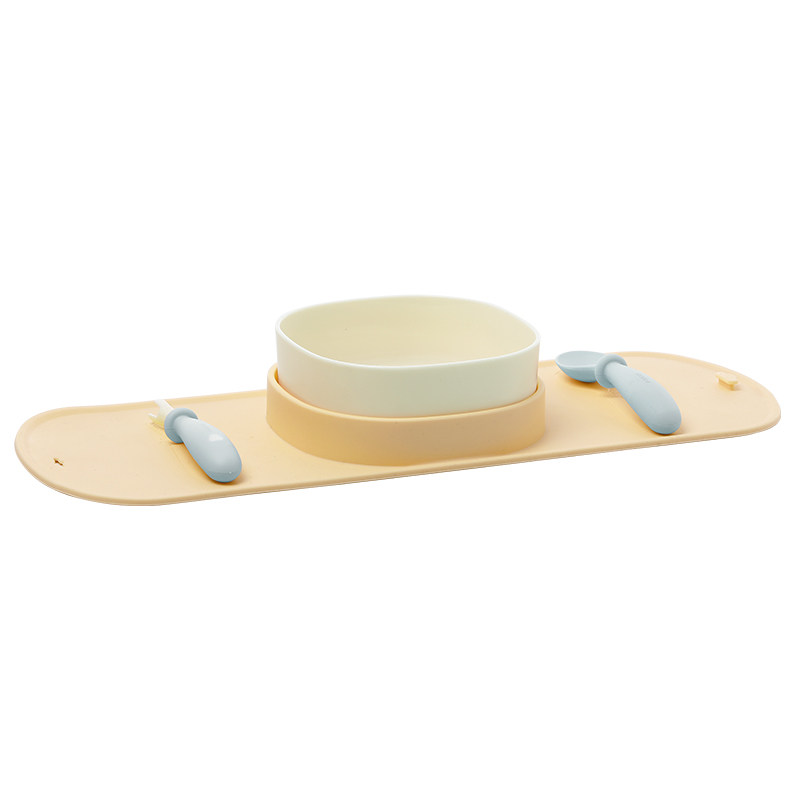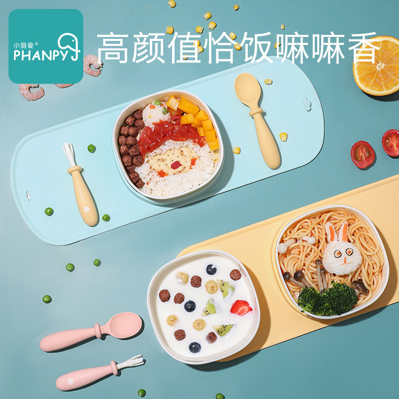 Children's cutlery set silicone food-grade baby non-staple food bowl, plate, fork and spoon, convenient to go out, waterproof and anti-fall