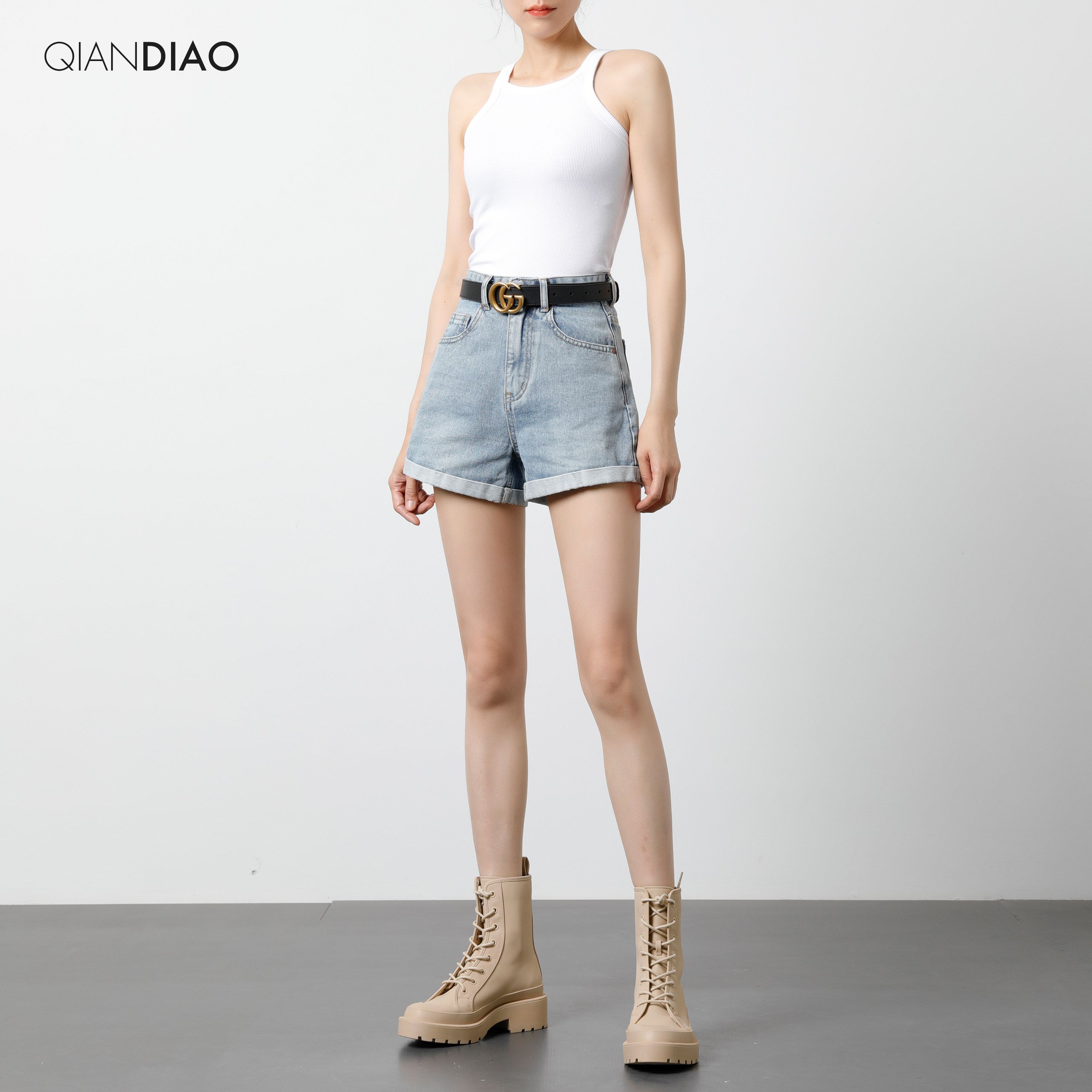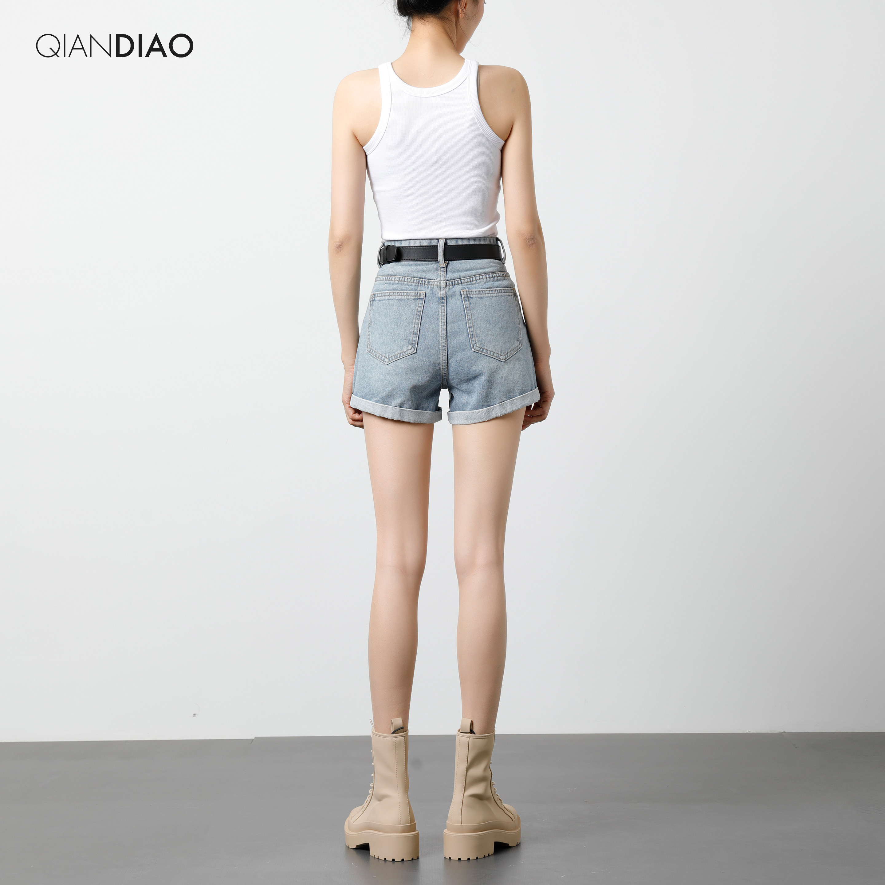Light color high waist denim shorts woman 2021 new summer loose slim curl ultra high waist a word hot pants broadlegged pants
