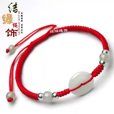 The year of Jade safe buckle red rope foot steel female male 925 silver transfer beads foot refining couple Road road Road foot rope