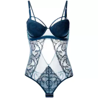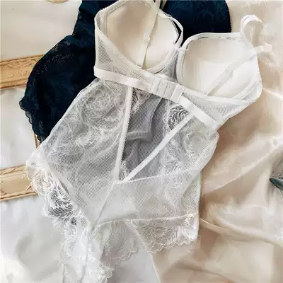 European and American women's bra temptation jumpsuit suspenders thickened Cups gathered sexy lace hollow lingerie women