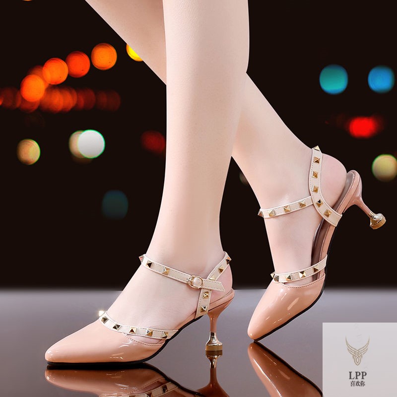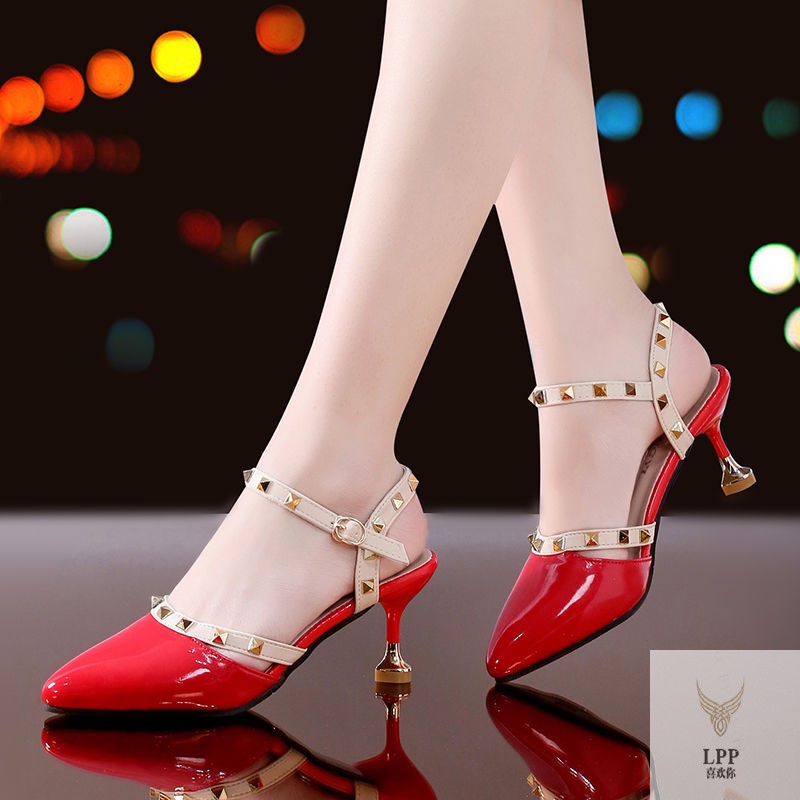2021 new sandals women's net red rivet high-heeled sling buckle sandals with skirt fine heel fashion sandals wild