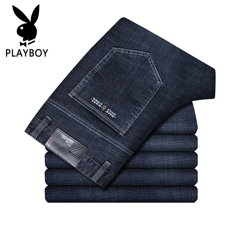 Flower Playboy Jeans Long Pants Male Spring New Straight Drum Loose Middle-aged Men Pants Big Size Elastic Casual Pants