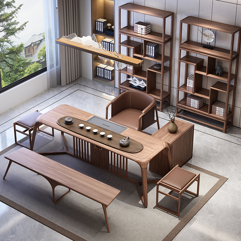 New Chinese tea table and chair combination solid wood Zen tea table tea art table tea room small tea table black gold wood furniture customization