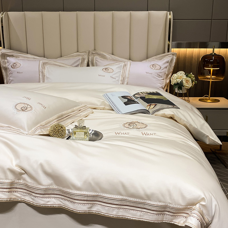 High-end light luxury pure cotton 140 long staple cotton 4-piece set of European hotel style simple embroidered bedding