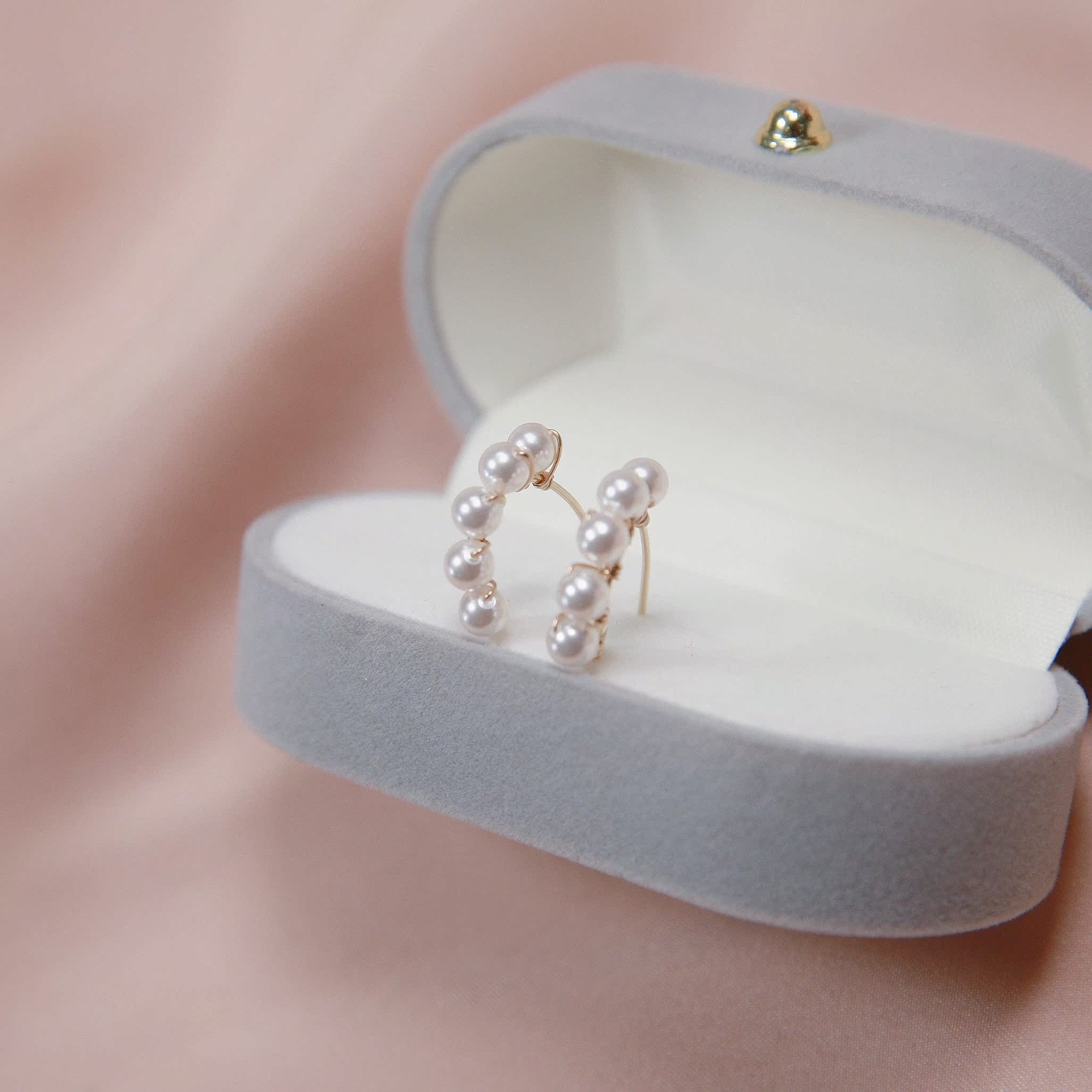 American 14K gold sheer strong pearl earrings female minimal design ear decorations hand - winded pure silver ear nails