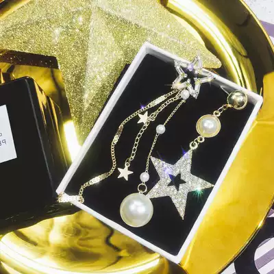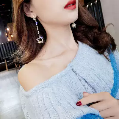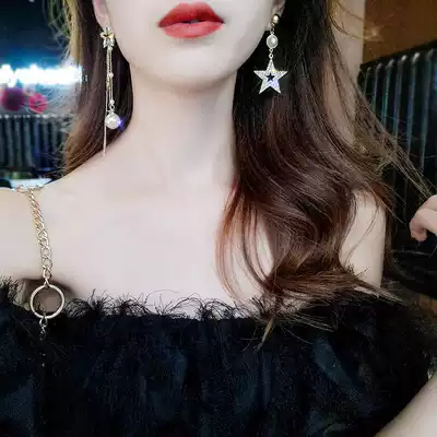 Korean star earrings female 2021 New temperament long version tassel earrings asymmetric net red ear decoration tide