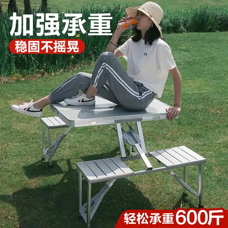 8 seconds folding outdoor god table multi-functional integrated portable table and chair a box of four stools alloy one-piece table picnic table