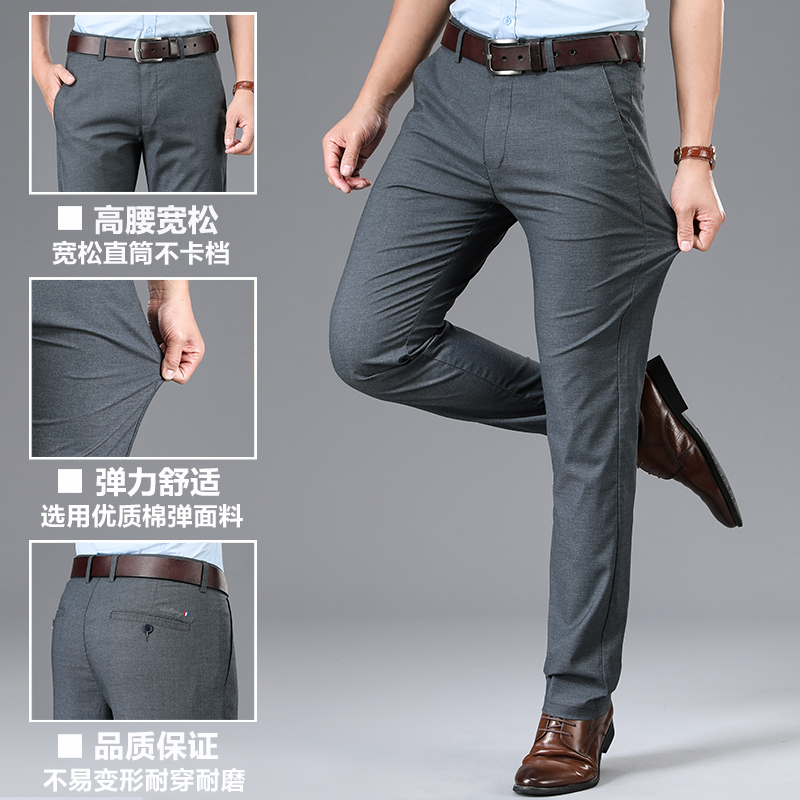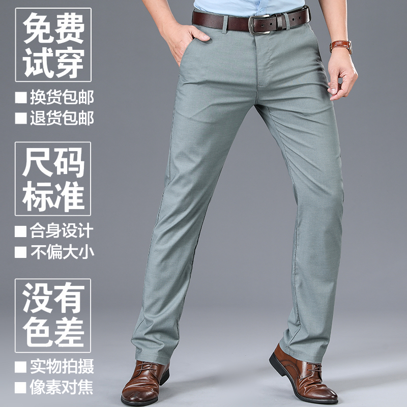 Modale Casual Pants Men's Straight Barrel Loose Summer Thin style Sky silk Western pants Men's elastic mid-year high waist long pants man