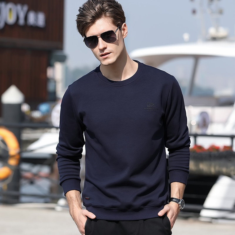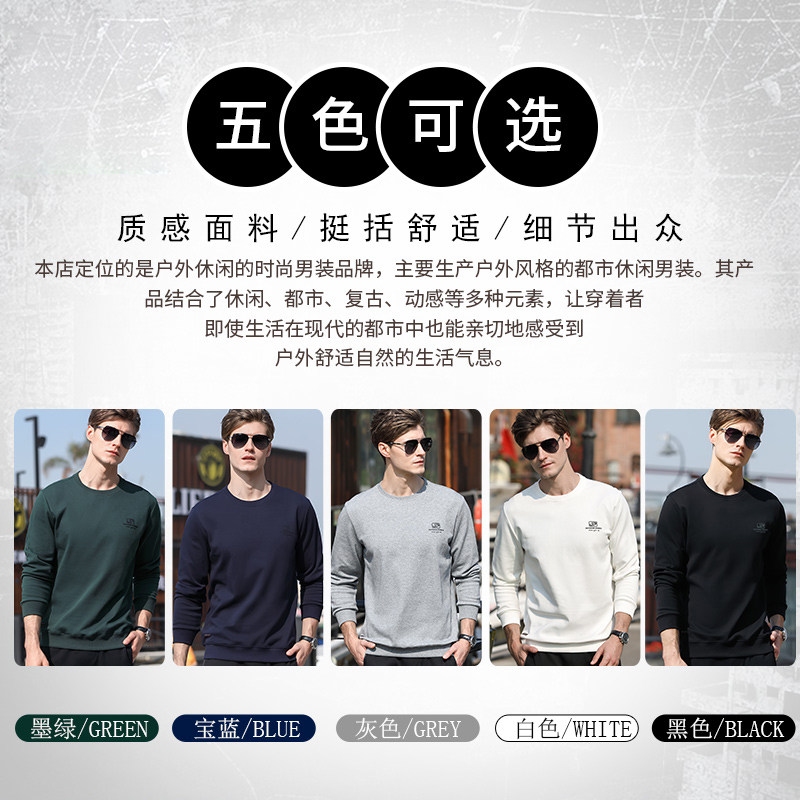New round neck men's long-sleeved T-shirt solid color loose round-neck T-shirt trendy youth long-sleeved T-shirt men's thick T-shirt