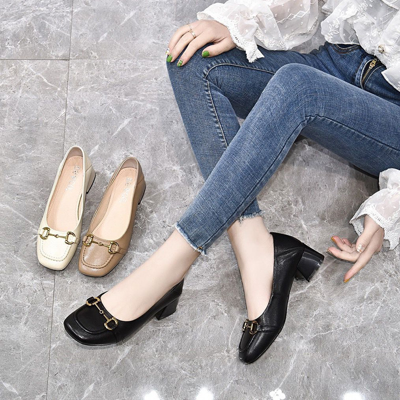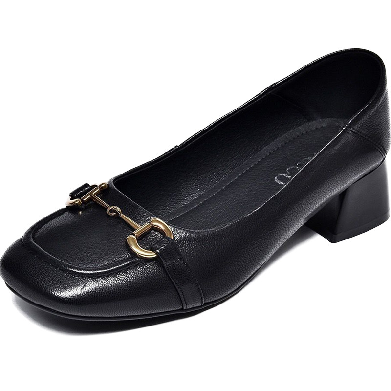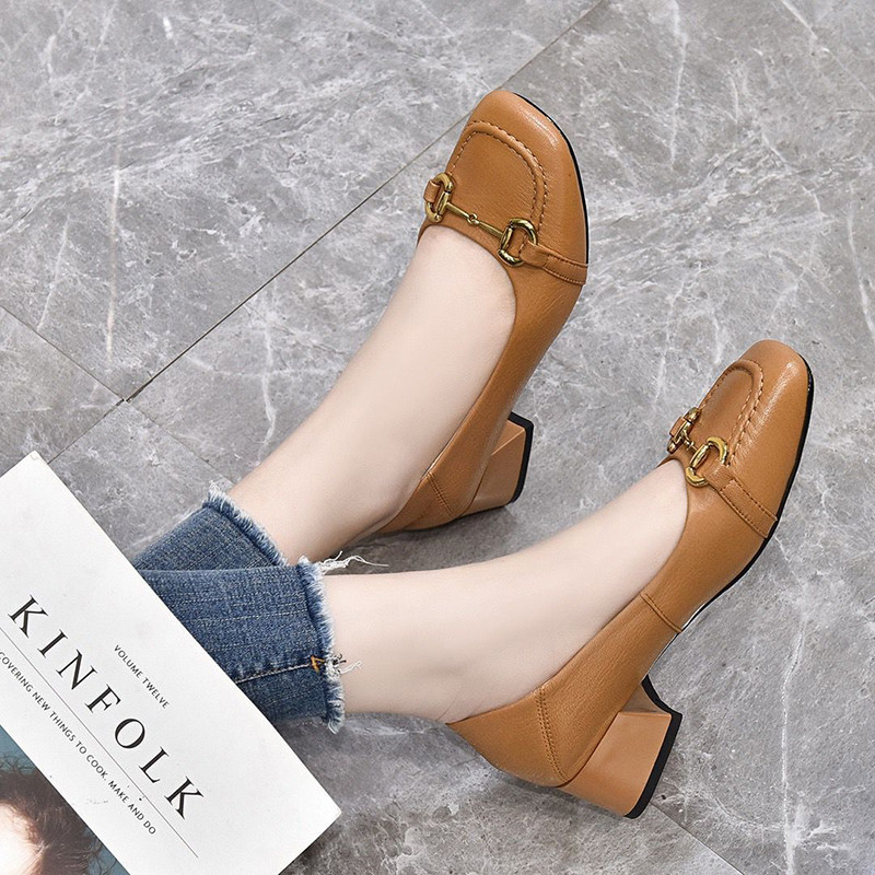 Leather retro shoes exploded female heel 2022 new soft - leather shallow single shoes female French heel shoes