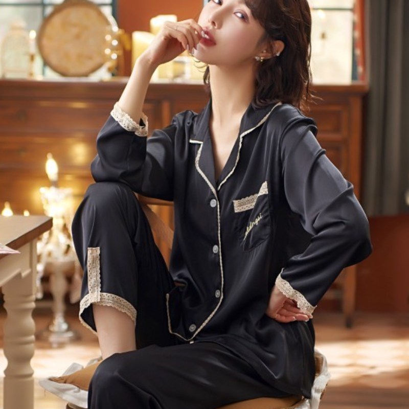 2023 New Silk - noodle pajamas lace lace lace lace in spring and autumn home clothing senior summer