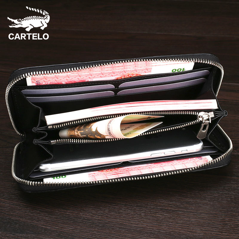 Caravan Crocodile wallet Male long version genuine leather Large capacity Laced Head Layer Bull Leather Money Clip Avocado Leather Men Handbags