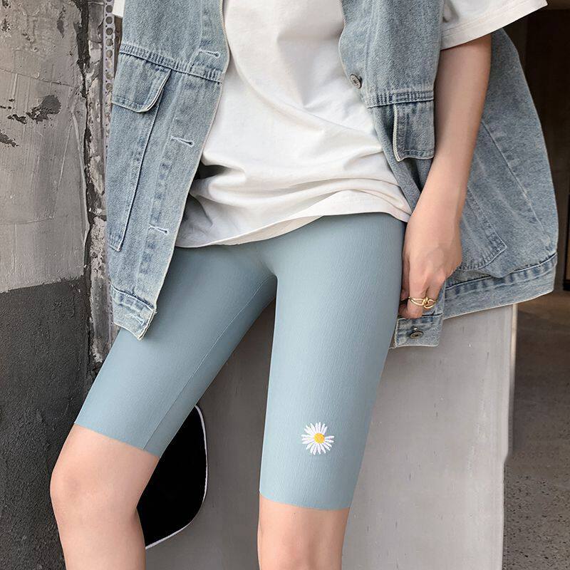 Five-point ice silk leggings Women's thin summer anti-light safety pants can be worn outside small daisy large size riding shorts