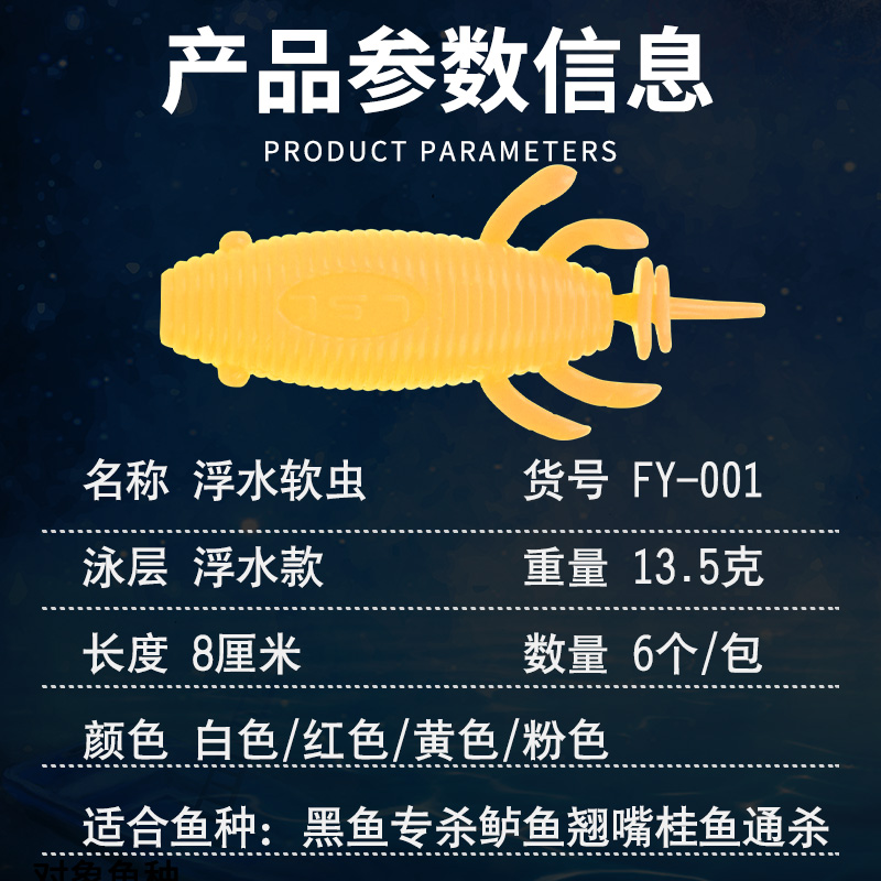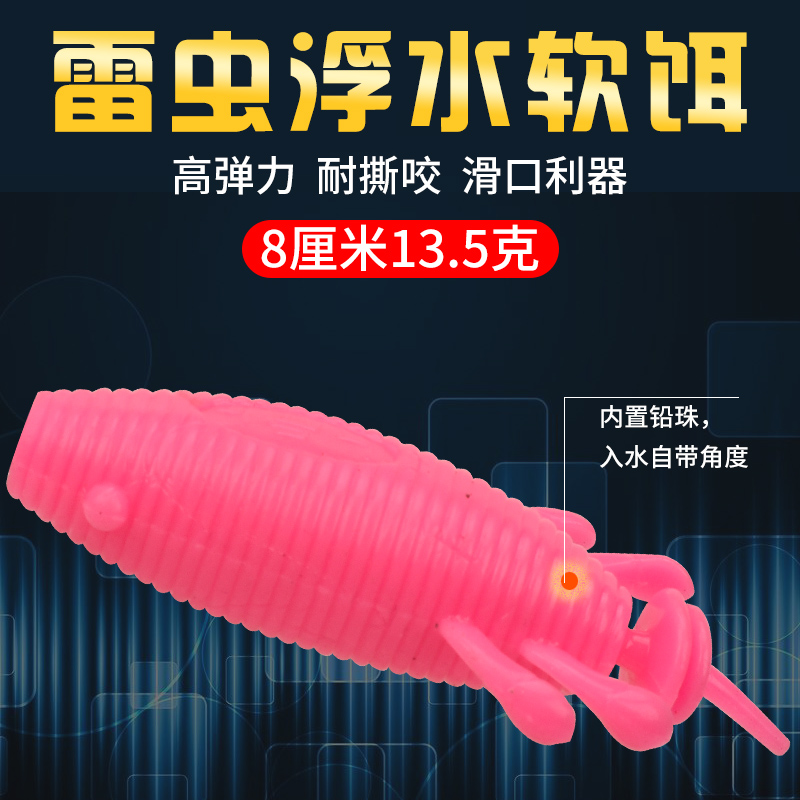 Floating water soft insects hit black fish fake bait Lei Qiang Luya bait Soft Bait long throw small black fish to kill high specific gravity Thunder frog