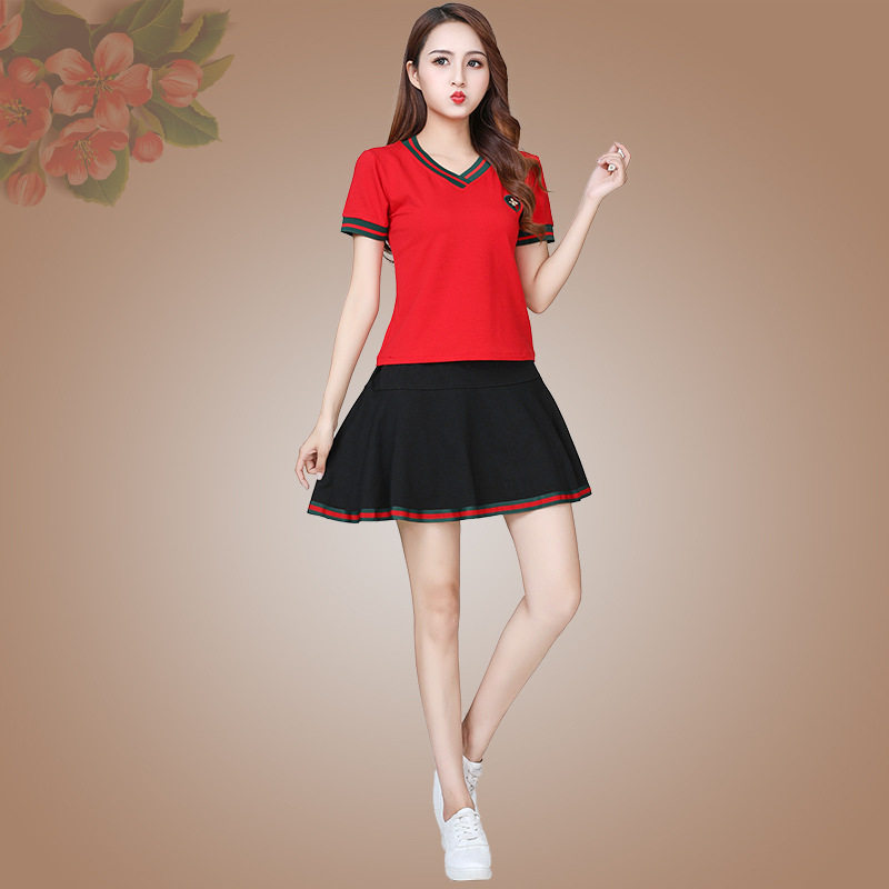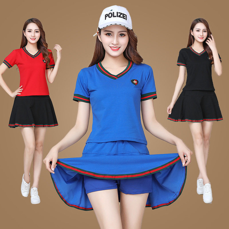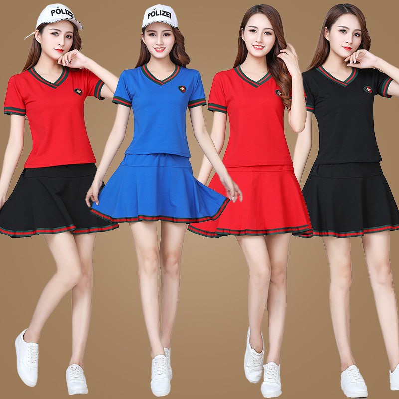 New Square Dance Summer Dance Suit Short Sleeve Short Skirt Fitness Suit V Collar Pure blouse Thin Pure Cotton Casual Suit