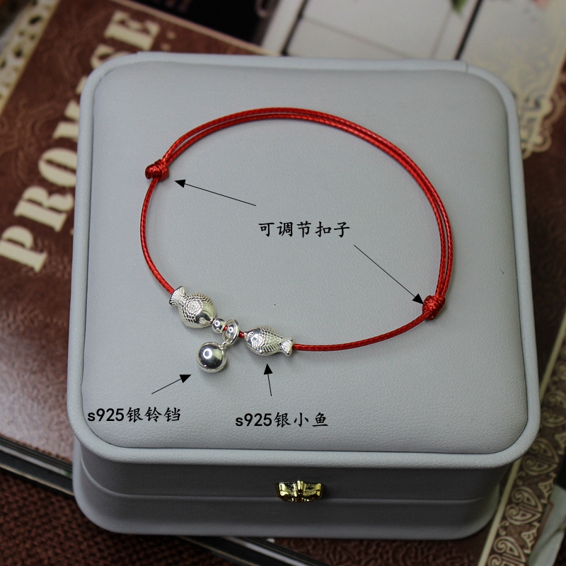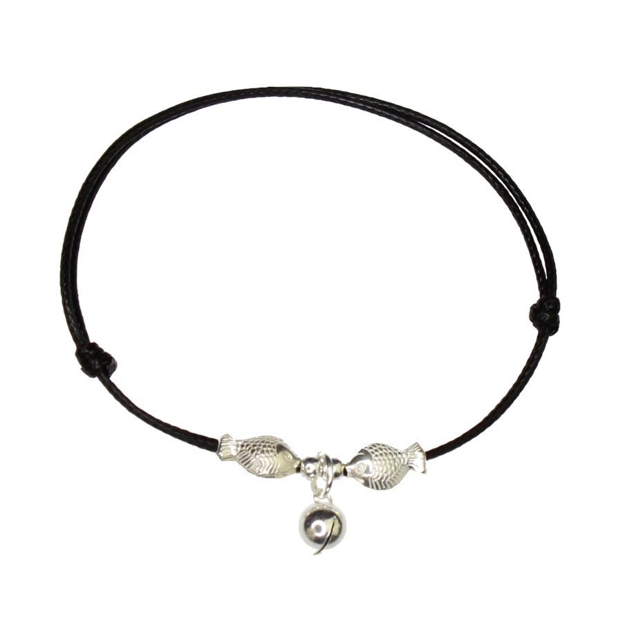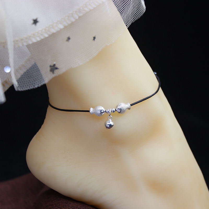 2021 new foot chain water sound bell and sound male and female couple a pair of pure silver kissing fish minimalist Han version waxed handmade