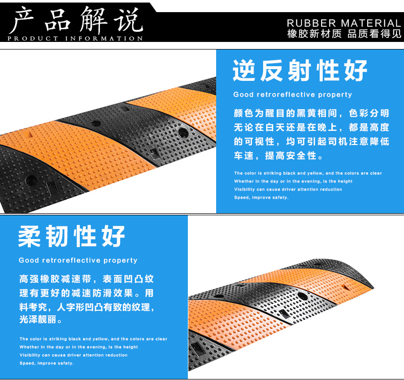 Deceleration belt rubber deceleration plate car deceleration belt road deceleration ridge road buffer belt traffic facilities