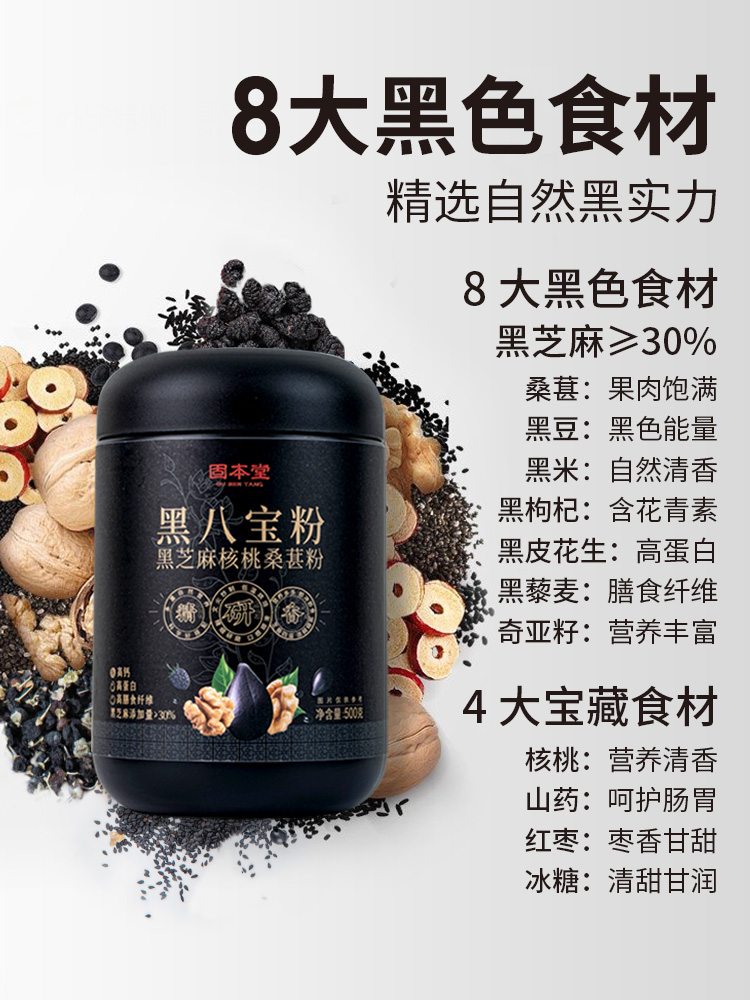 Black sesame (≥ 3 0%) walnut black rice black bean black Chinese wolfberry mulberry black leather peanut yam powder black quinoa wheat chiaya seed red date icing sugar