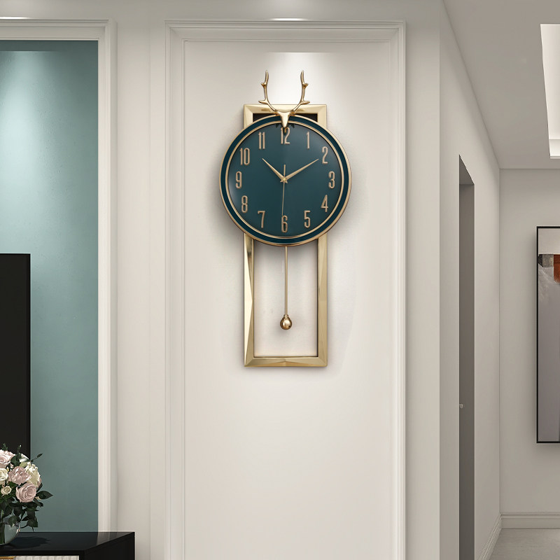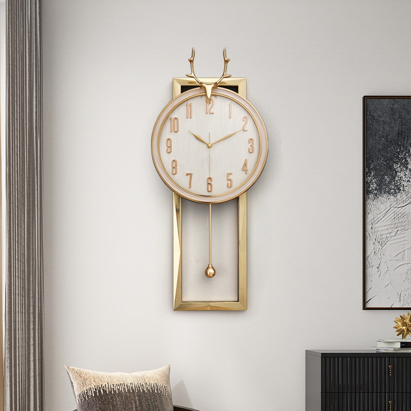 Nordic light luxury wall clock Deer head fashion clock European simple wall clock household new Chinese background wall decoration