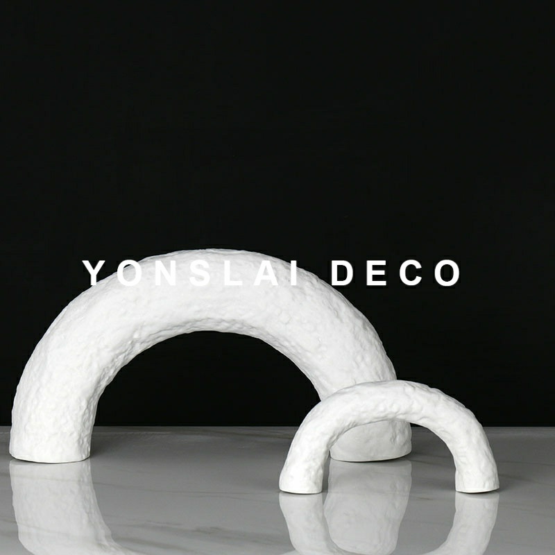 Minimalist modern model room arched light luxury style soft decoration art sandstone material TV cabinet decoration