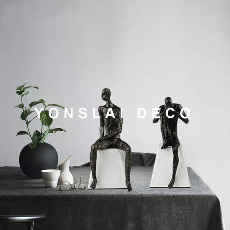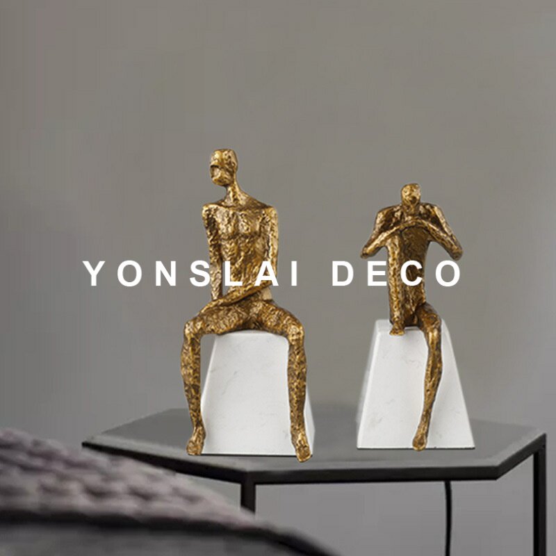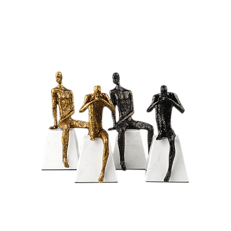 Modern metal material thinking character sculpture decoration light luxury style home club lobby study soft decoration