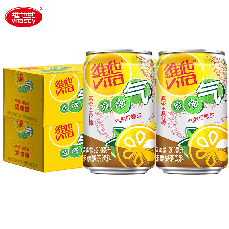 (SF)vitai mini can bubble lemon tea 200ml*24 cans full carton batch small cans of tea drinks