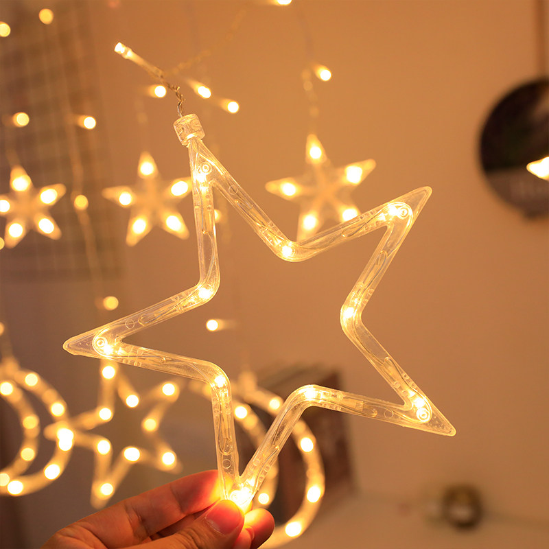LED lights flashing lights string lights starry lights curtain stars moon hanging lights net red room bedroom decorative lights string