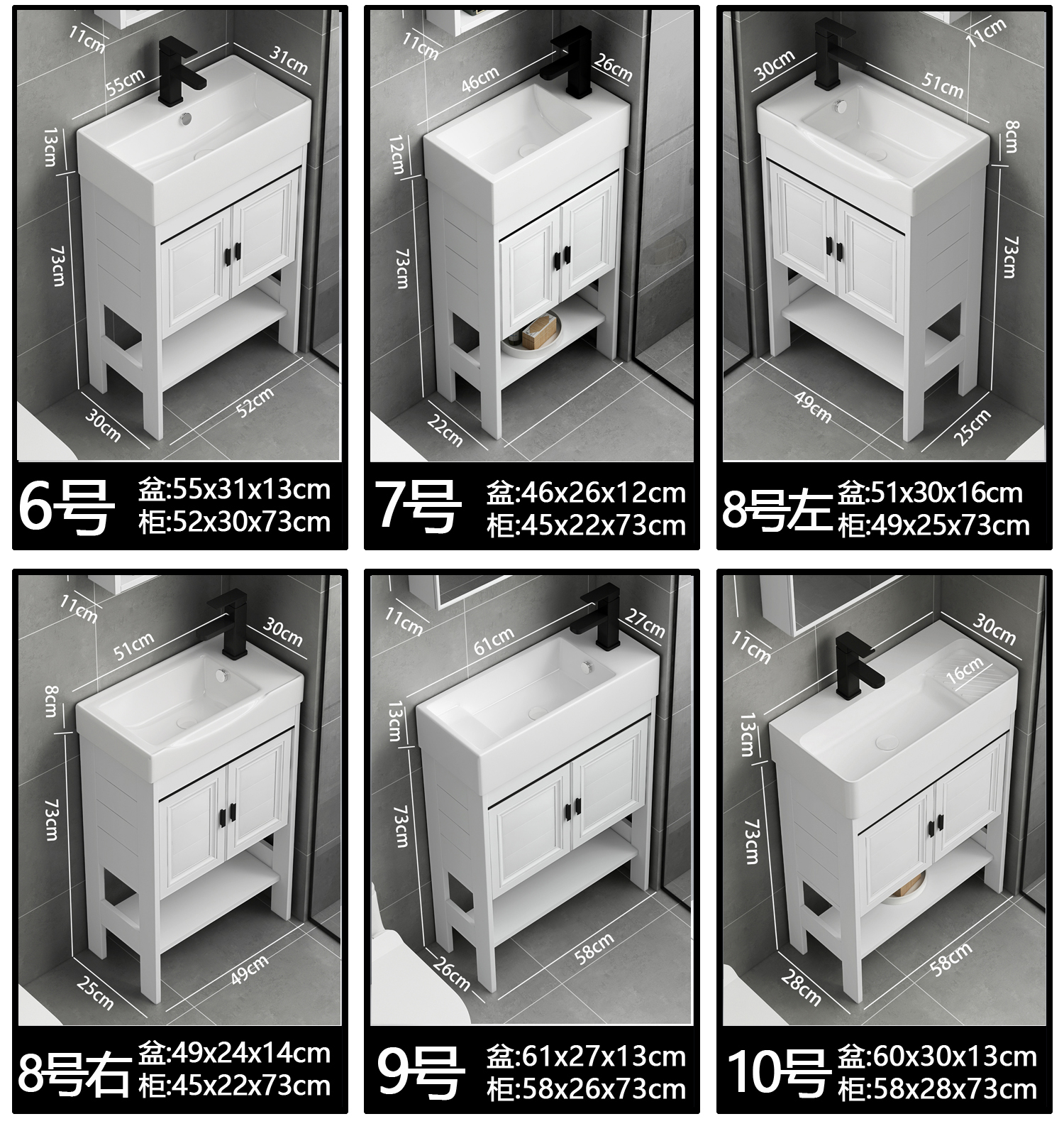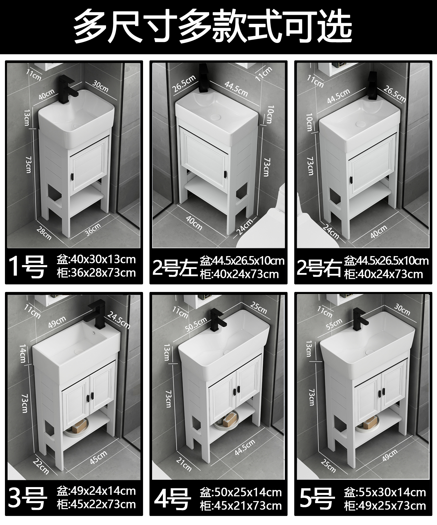 Small apartment corner floor-to-ceiling bathroom cabinet Small size integrated washbasin cabinet combination Mini narrow long washbasin aluminum cabinet