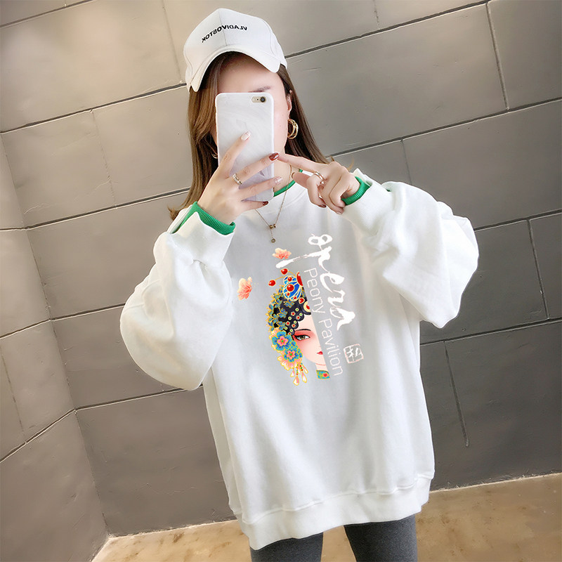 Chinese style fake two pieces of fat MM top clothes ins loose large size women's clothing 200 catties loose spring and autumn thin section sweater women