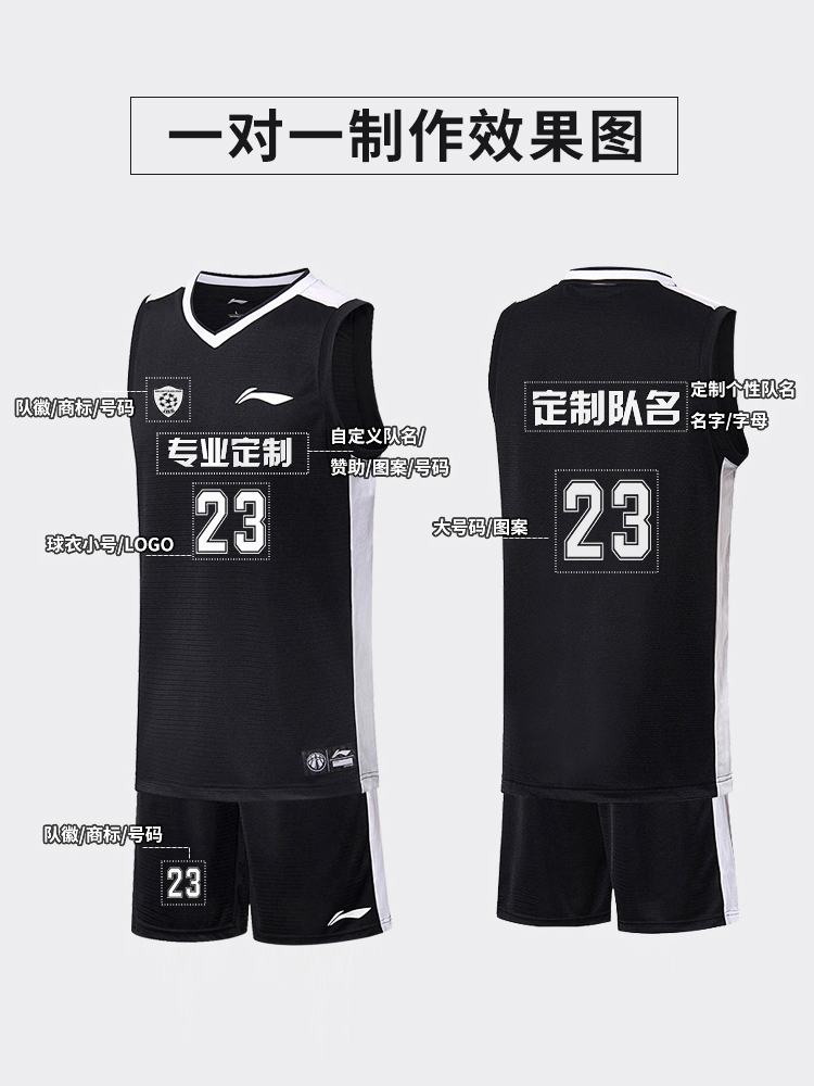 Li Ning Basketball Suit Suit Men's Jersey Training Team Suit Ball Suit Breathable Sportswear Custom Print number-Taobao