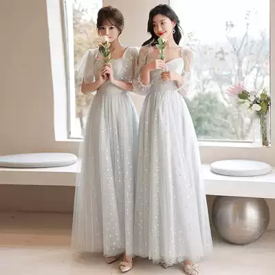 Grey bridesmaid clothing 2021 New Winter Fairy temperament sister Group dress dress long version thin simple atmosphere winter