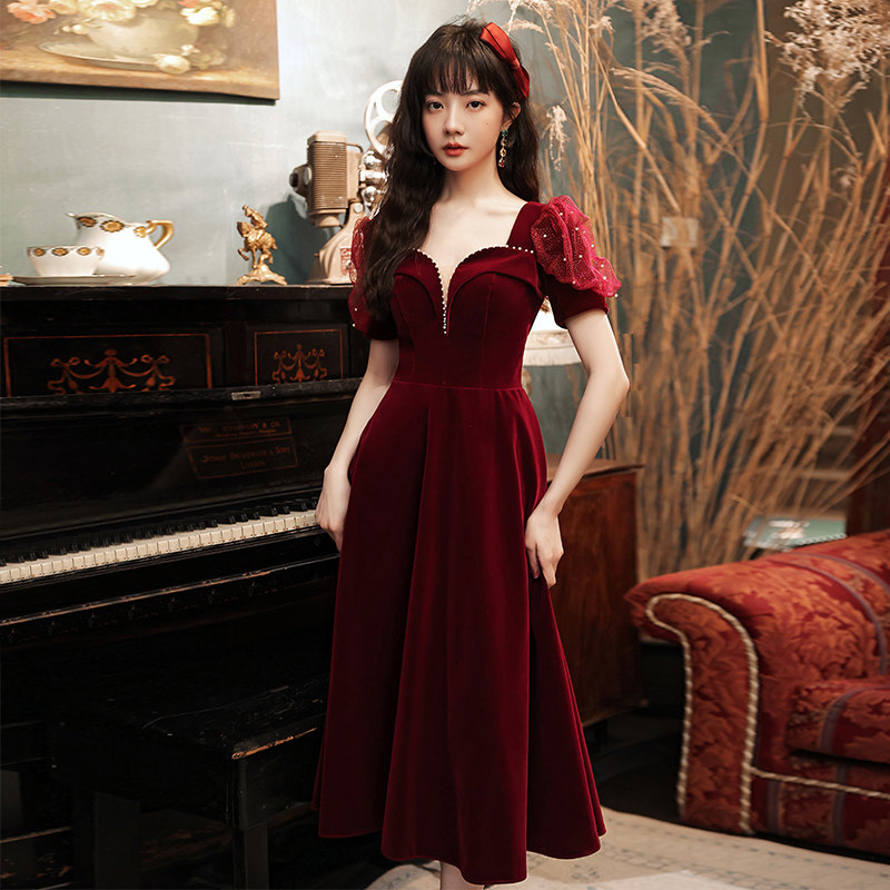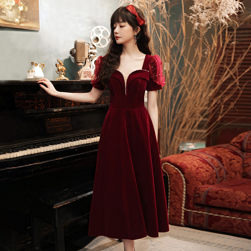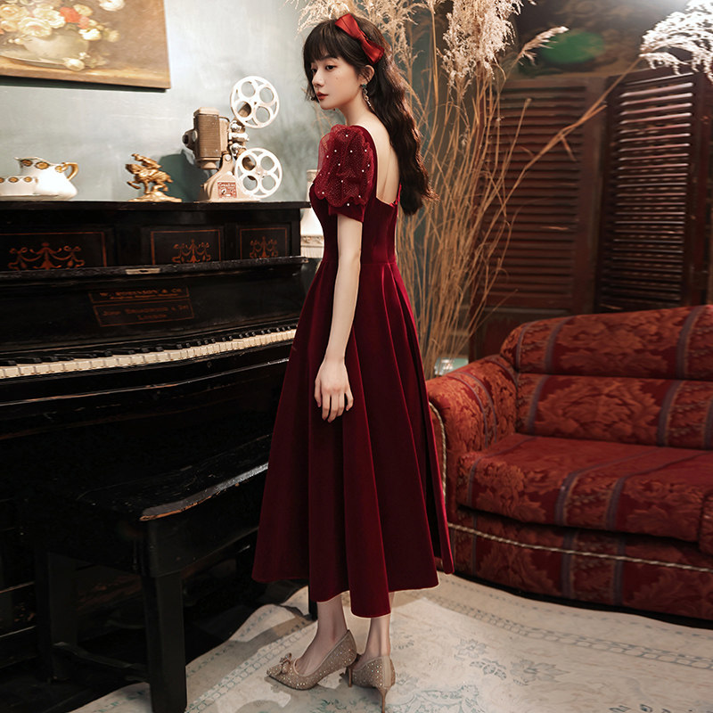 Bride toasting service 2021 new wedding wine red small evening dress dress banquet temperament usually can wear engaged women