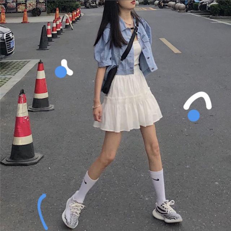 Denim jacket single piece white lace suspender single piece white pleated skirt single piece denim jacket + white lace suspender two-piece denim jacket + white pleated skirt two-piece white lace suspender + white skirt two-piece denim jacket + white lace suspender + white pleated collection plus purchase priority shipping
