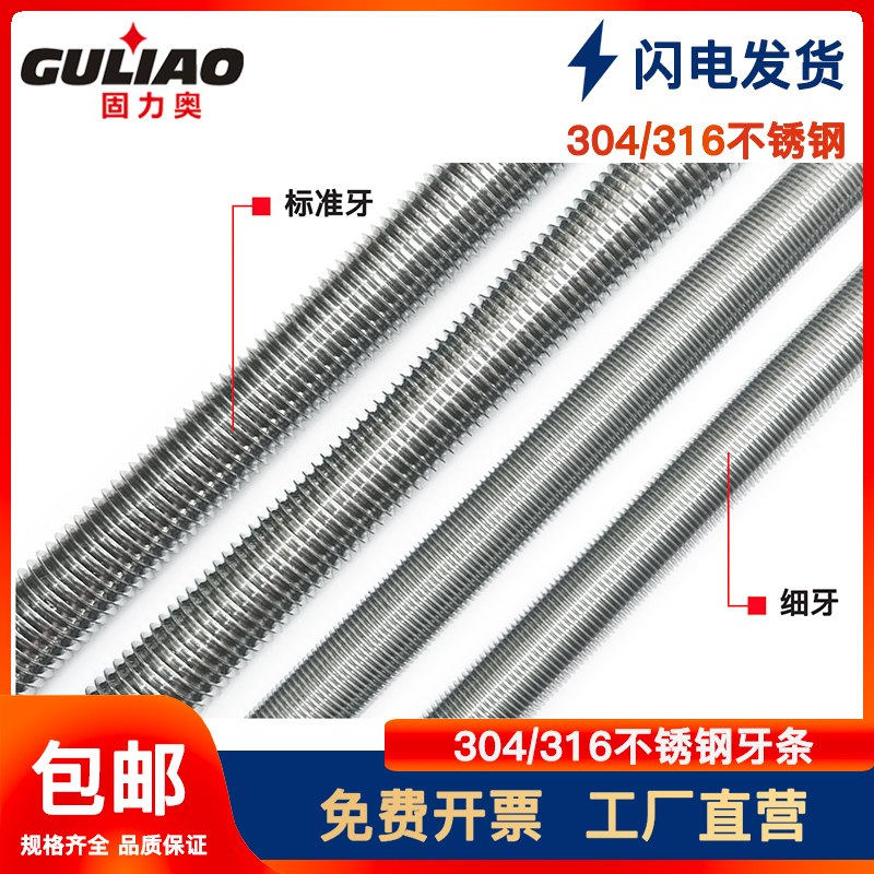 Screw is divided into 2 kinds of standard teeth Fine teeth 304 fine teeth M6 * 0.5 * 1 meter 304 fine teeth 6 * 0.75 * 1 meter 304 fine teeth 8 * 0.75 * 1 meter 304 fine teeth M8 * 1 * 1 * 1m 304 fine teeth M10 * 1*1 * 1m 304 fine teeth M12 * 1 * 1 * 1m 304 fine teeth 12 * 1.25 * 1m 304 fine teeth 12 * 1.5 * 1m 304 fine teeth 14 * 1 * 1 * 1m 304 fine teeth M14 * 1.5 * 1m 304 Fine teeth M16*1*1m 304 Fine teeth M16*1.5*1m 304 Fine teeth 18*1.5*1m 304 fine teeth 20*1*1m 304 fine teeth 20*1.5*1m 304 fine teeth 22*1.5*1m 304 fine teeth 22*2.0*1m 304 fine teeth 24*1.5*1m 304 fine teeth 24*2*1m 304 standard M3*1m(5 304 standard teeth M4*1m(5 pieces 304 standard teeth M5*1m(5 304 standard teeth 6 *1m (2 304 standard teeth M8 *1m (2 304 standard teeth M10*1m 304 standard M10*304 standard M10*3m (10 standard M12*1m 304 standard teeth M14*1m 304 standard teeth M16*1m 304 standard M18*1m 304 standard teeth M20*1m 304 standard M22*1m 304 standard M24*1m 304 standard M27*1m 304 standard teeth M30*1m below is stainless steel 316 316 stainless steel M6*1 meter 316 stainless steel M8*1 meter 316 stainless steel M10*1 meter 316 stainless steel M12*1 meter 316 stainless steel 14*1 meter 316 stainless steel M16*1 meter 316 stainless steel M18*1 meter 316 stainless steel M20*1 meter 316 stainless steel 24*1 meter