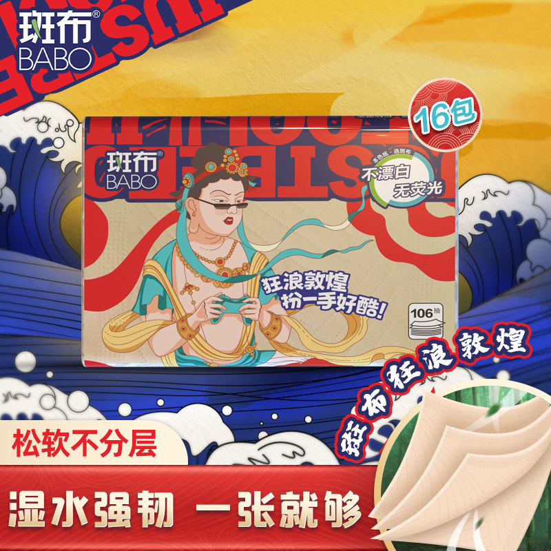 Patch Dunhuang series environmental protection bamboo pulp extraction toilet paper 16 packaging strong and thick multi-purpose household napkin