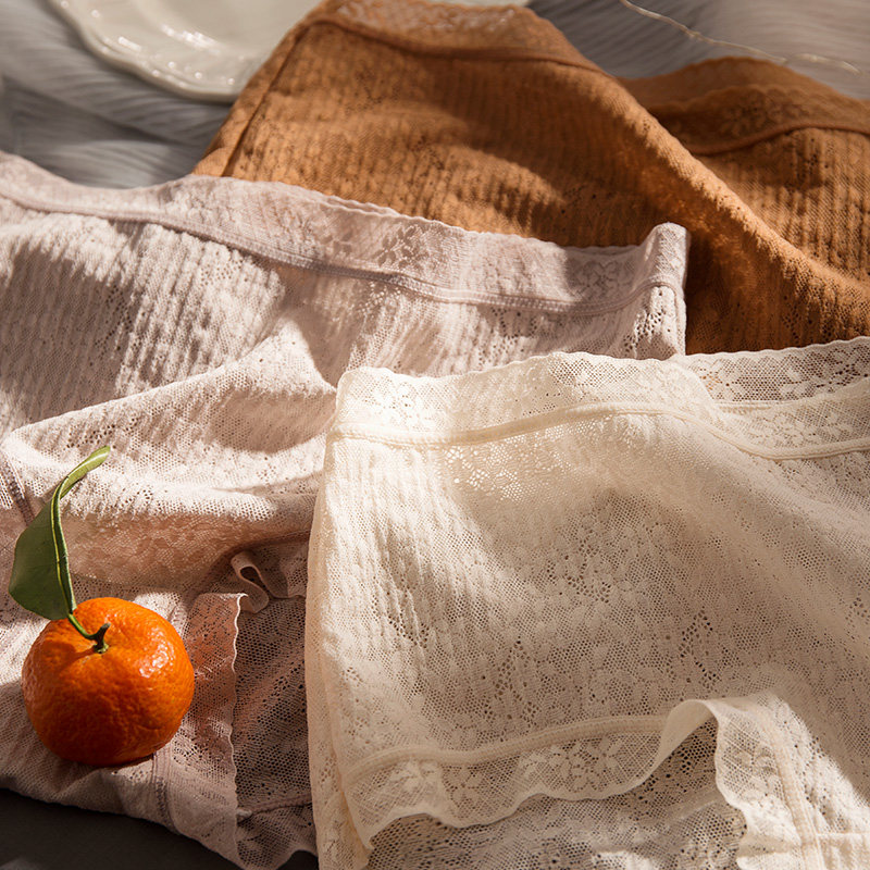 High waist underpants female lace with no marks large size to collect the new 2021 exploits summer thin medium-high waist non pure cotton