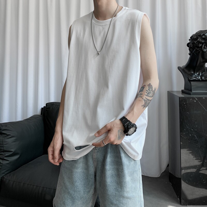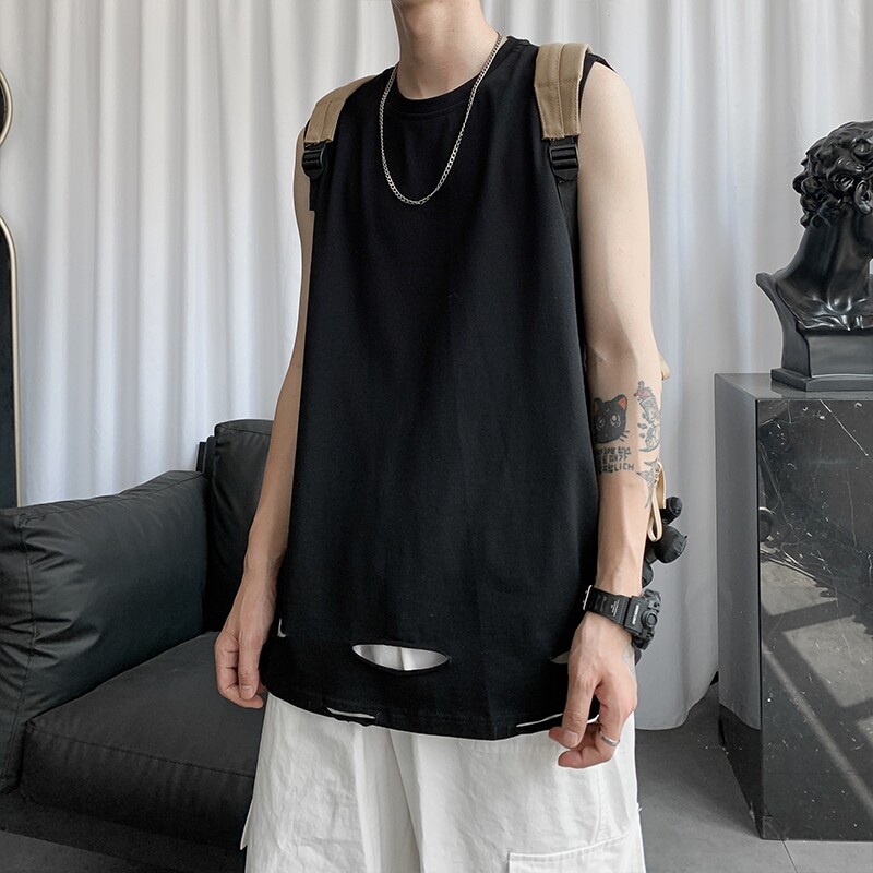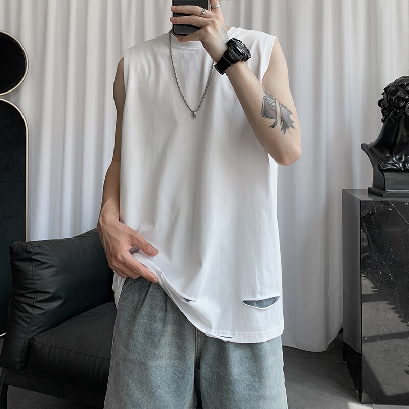 Cross-column thin vest men in tide wearing summer hole sleeveless T-shirt personality trend thin loose shoulders