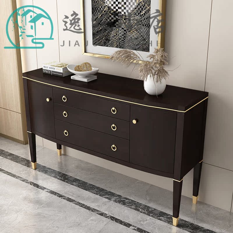 Brief Beauty New Style Solid Wood Entrance Door Closed Cabinet Black Sandalwood Sketching Living Room Veranda Decoration Cabinet Two Doors Three Pumping Custom Cabinet
