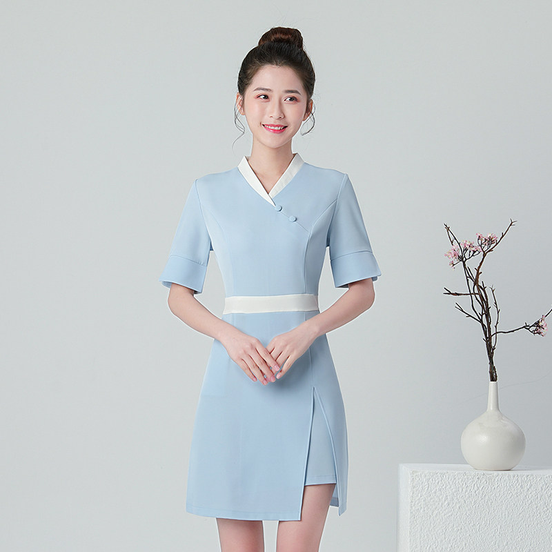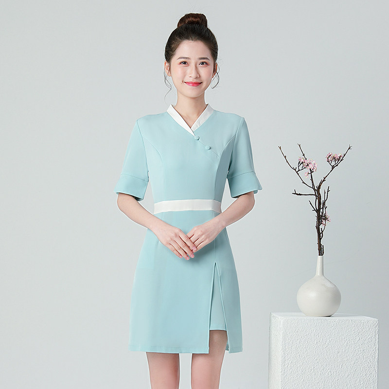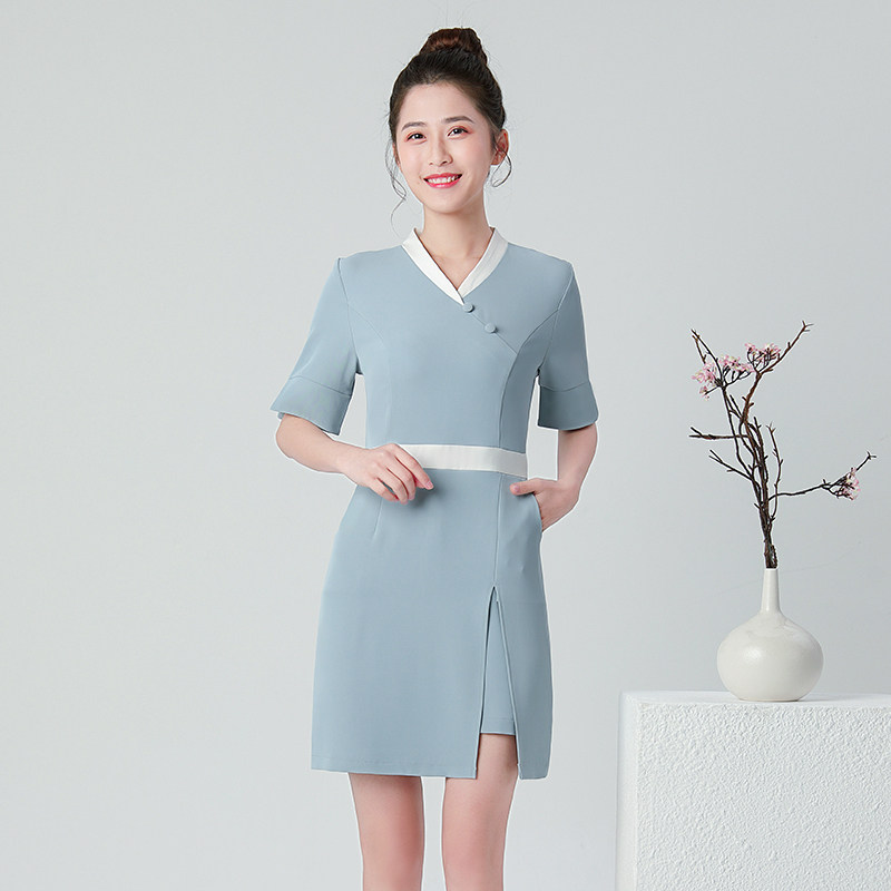 New spa foot bath club massage spa health pavilion technician clothes beautician work clothes summer dress women's temperament