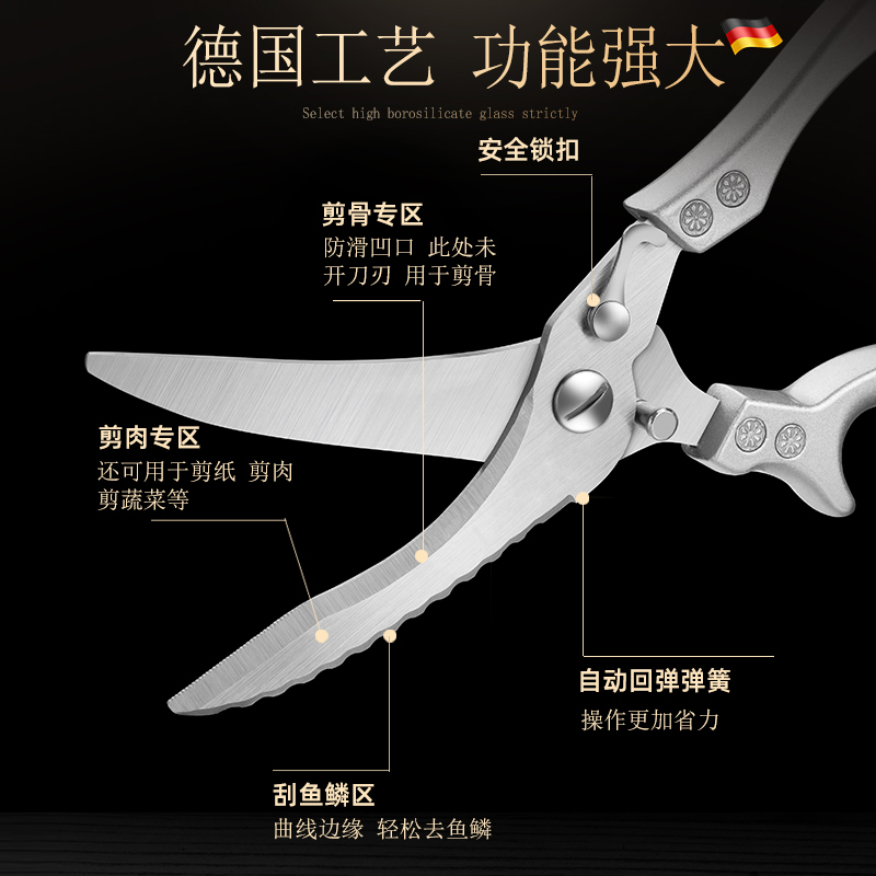German kitchen utensils chicken bone scissors stainless steel fish bone scissors special scissors for killing fish barbecue food household scissors