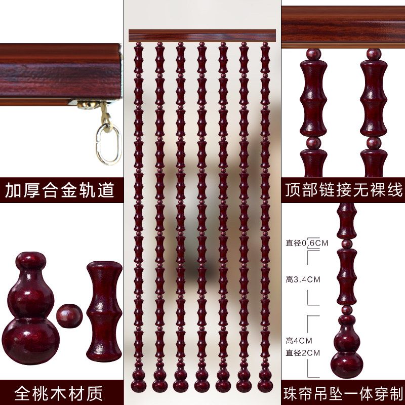 Solid wood curtain Peach wood bamboo bead curtain Door curtain Partition window Entrance powder room Bedroom door curtain Door-to-door barrier brake Household