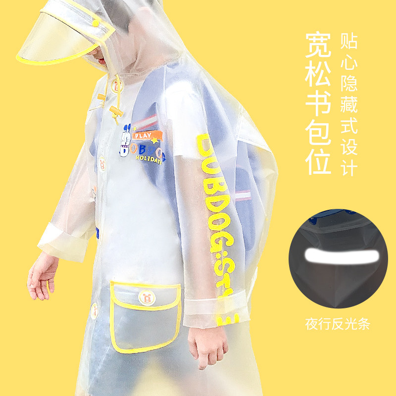 Babu Bean Children Raincoat Boy Girl School Bag Place Transparent Kindergarten Baby Elementary School Students Waterproof Reflective Rain Cape-Taobao