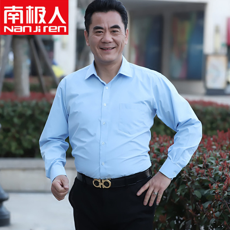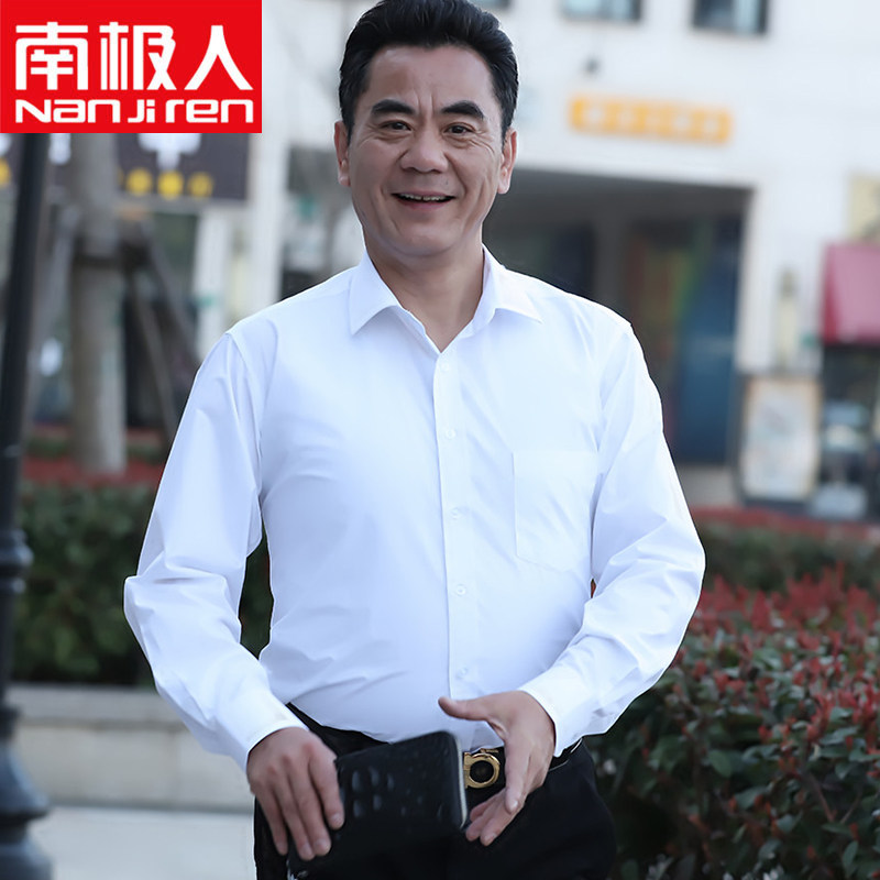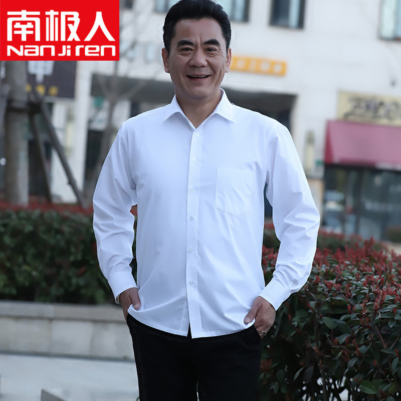 Antarctic men's shirt long sleeved spring and autumn pure cotton old and old loose leisure dad is dressed in white inch cotton shirt