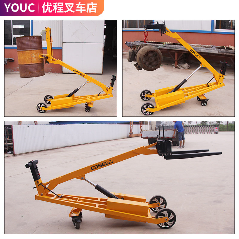 Hand-pushed oil barrel cart Multi-functional Ram Arm Light Electric Carrying car Mobile hydraulic pile High machine can be folded and unloaded