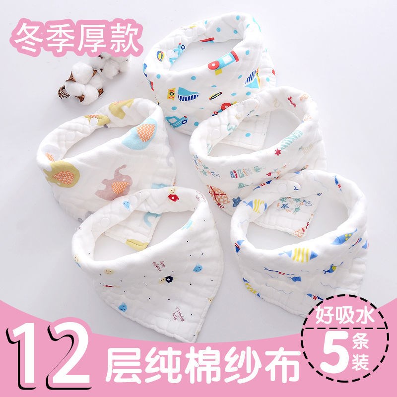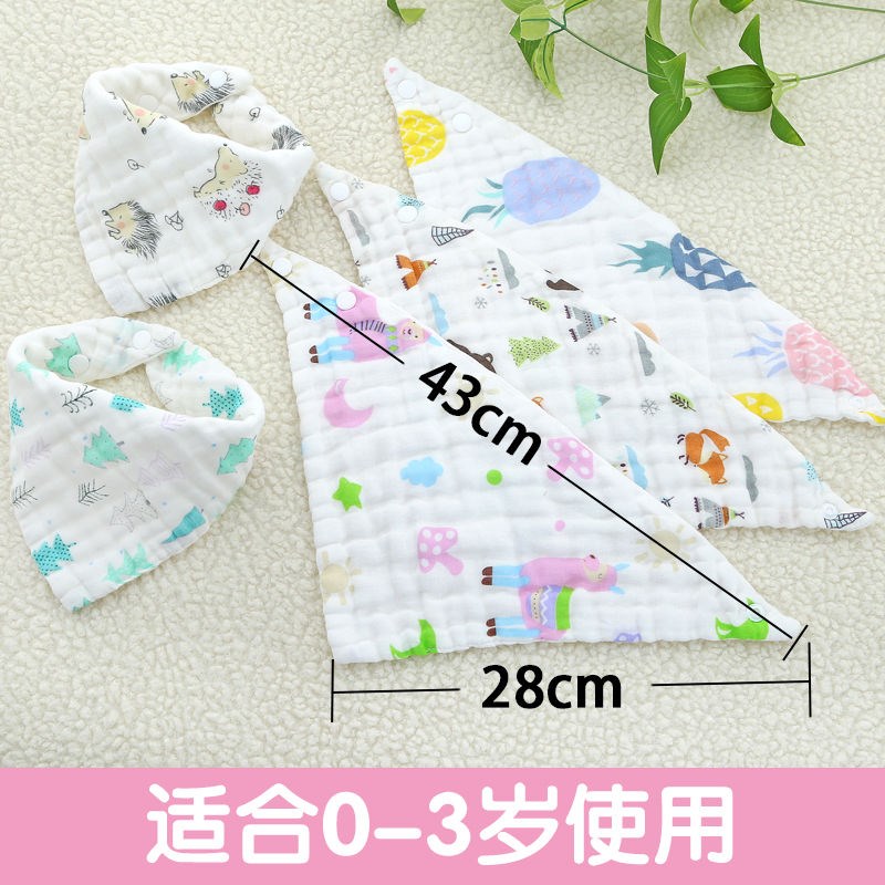 Baby saliva towel pure cotton gauze newborn baby triangular towel female boy enclosure thickened double press buckle ultra soft absorbent