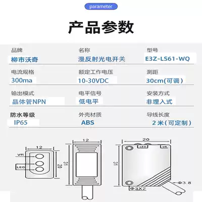 Square laser diffuse reflection optical switch sensor Infrared sensor switch E3Z-LS61NPN Visible light 24V