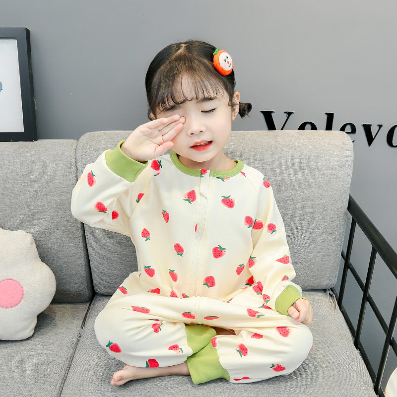 Girl's sleepwear Spring fall Children's baby Children's pure cotton Home Suits Long Sleeves Defense of Cool Women Baby Sleeping Bag