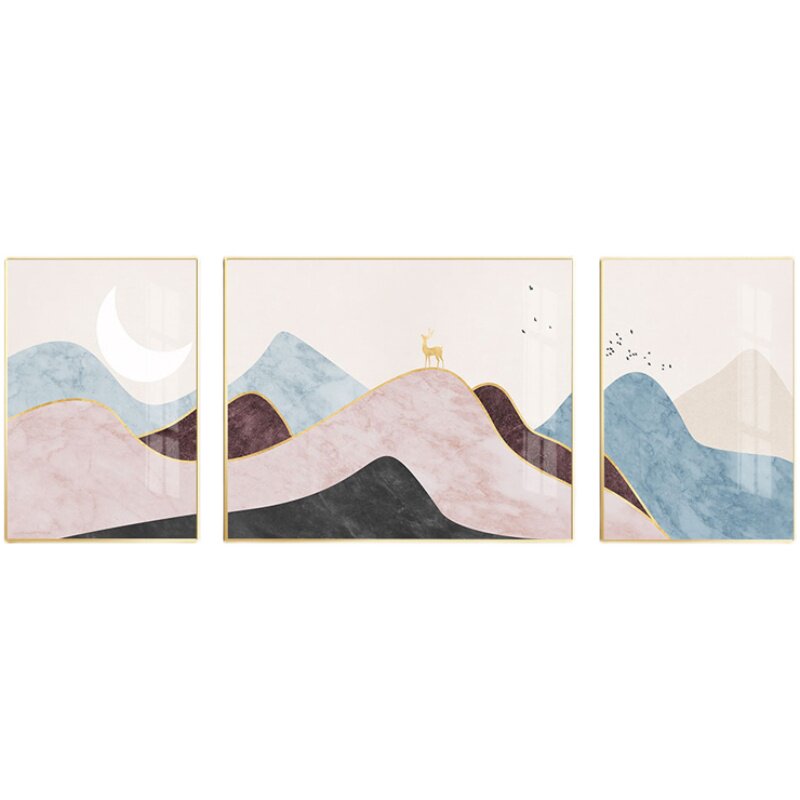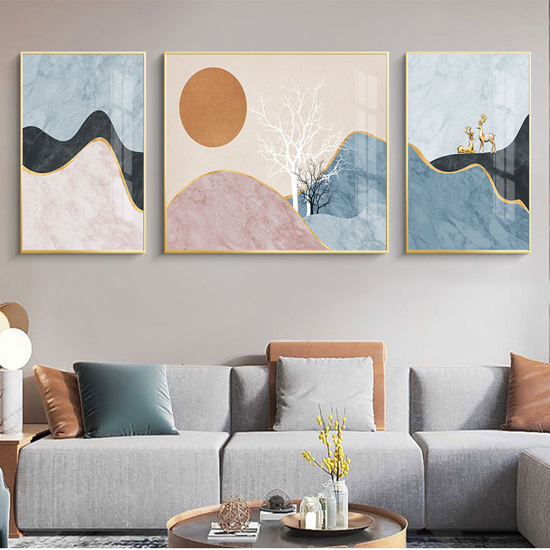 Light luxury living room decorative painting modern minimalist sofa background wall painting atmospheric crystal porcelain painting triptych mural wall painting